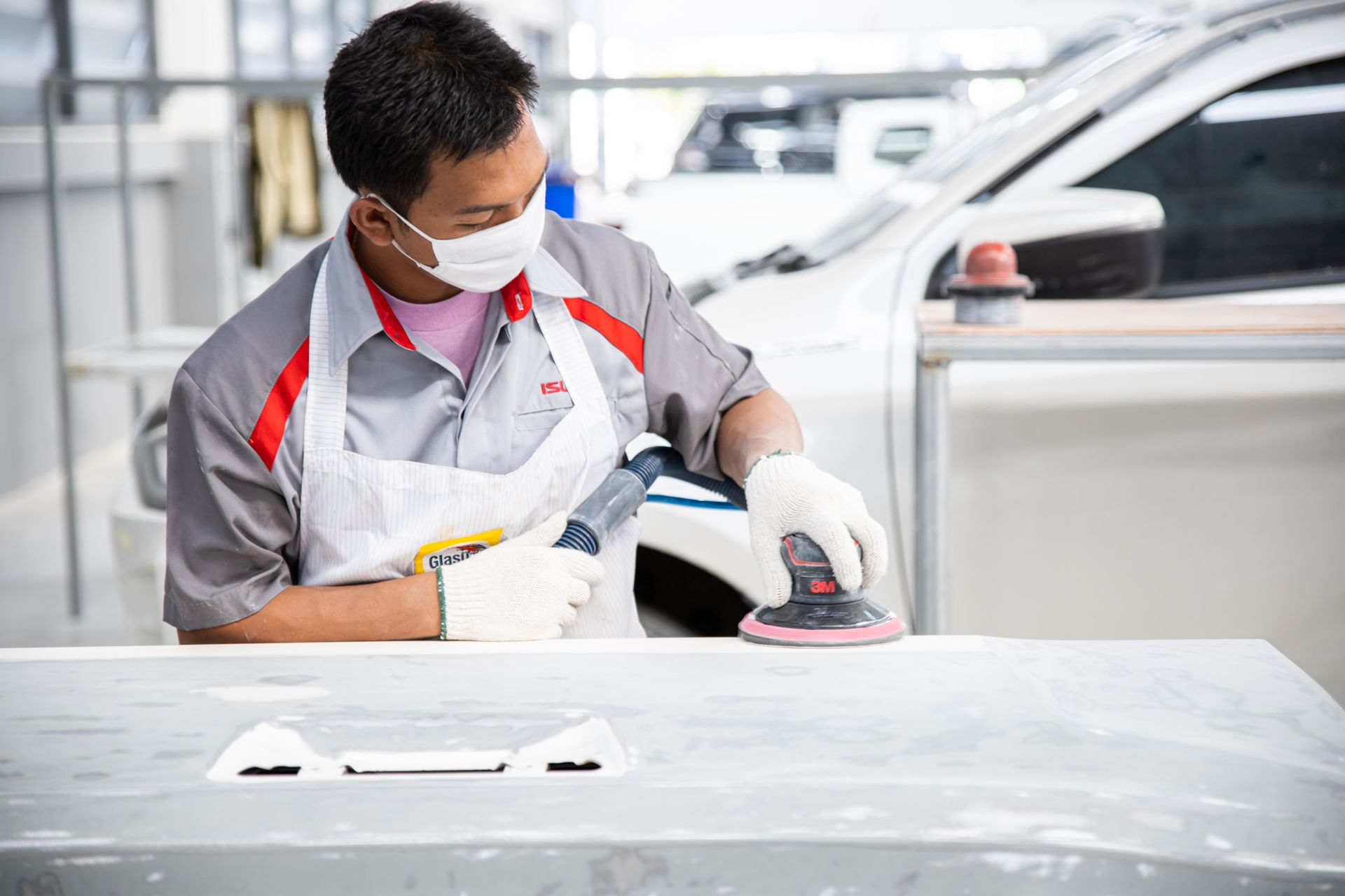 พ่นสีตามมาตรฐานอีซูซุ ทั้งสีรองพื้น สีจริง และเคลือบเงา ให้รถกลับมาสวยเหมือนเดิม